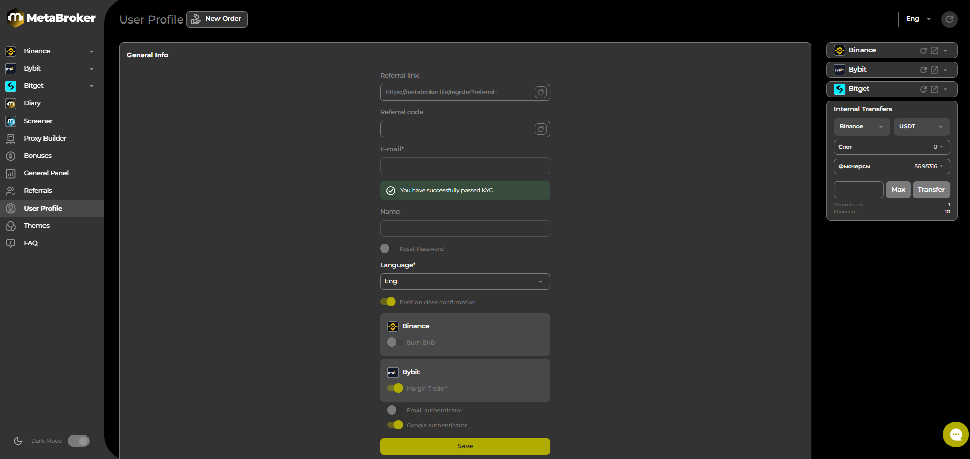 | Bybit: Enable UTA mode    | Move the slider to the right to enable UTA Mode.                                                                              |