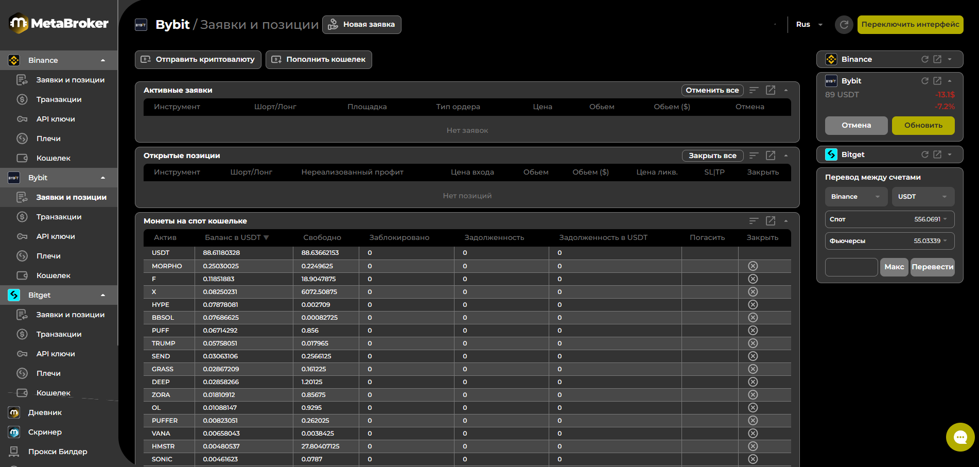 Сразу после регистрации вам доступно торговля на бирже Bybit. Для этого[ пополните счёт](https://docs.metascalp.io/kinglabcrypto/exchanges/bybit/orders-and-positions/popolnenie-koshelka), [создайте API ключи](https://docs.metascalp.io/kinglabcrypto/exchanges/bybit/api-klyuchi) и подключите их к терминалу.